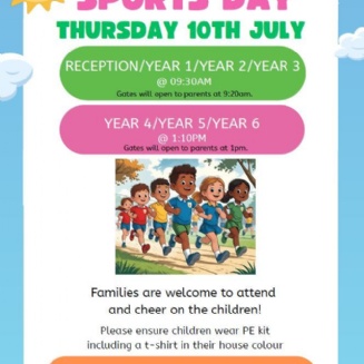 **SPORTS DAY - PLEASE SEE MINOR UPDATES TO TIMINGS BELOW**